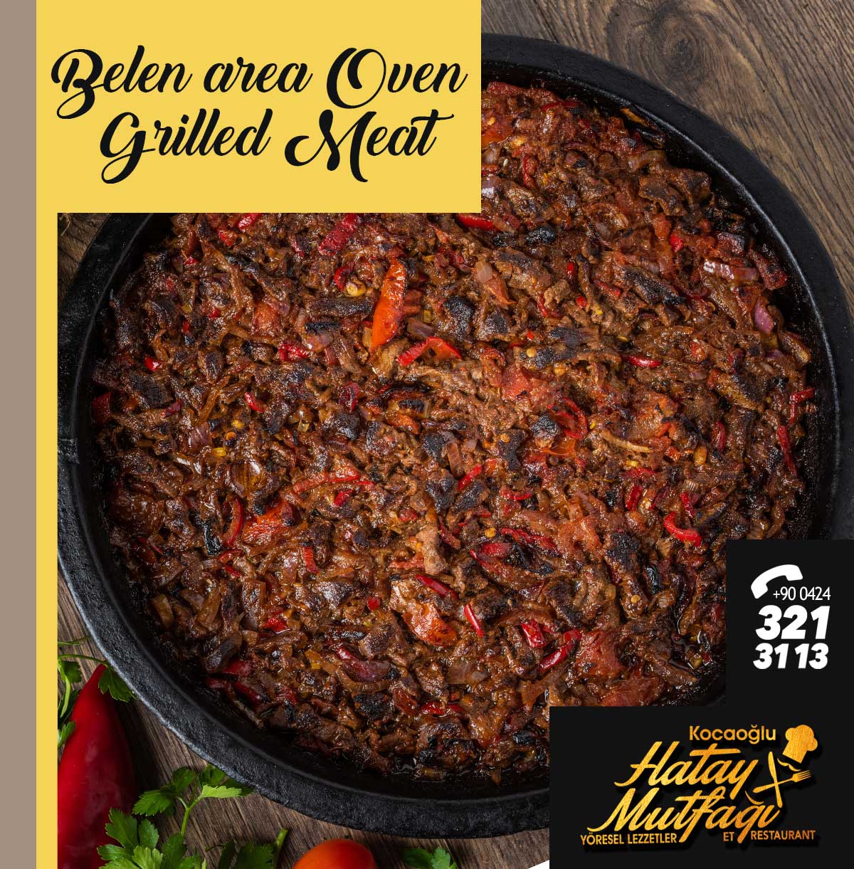 Hem görüntüsü ile hem de lezzeti ile ismini tüm Türkiye'de duyuran Belen Tava yemeği, artık Antalya'da Hatay Mutfağında sunulmaktadır, bir kez tadıldığında bir daha vazgeçilmesi zor olan Belen Tava, ekmeğin bol bol batırılarak suyununa kadar sıyrıldığı, en has yemeklerindendir. Et kavurmasının özel baharatlar ve soslarla can bulmuş halidir. Hatay'ın Belen ilçesine ait bu lezzetimizi tatmadan dönmeyin derim.